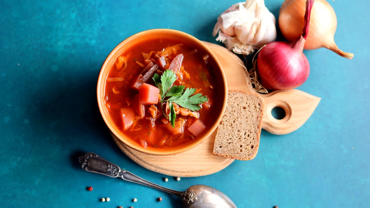- 俄羅斯:在其傳統版本中,羅宋湯(俄羅斯稱為“波爾西奇”)通常包含牛肉和酸菜,以及甜菜,這是該湯品的標誌性成分,賦予湯品其獨特的紅色和微甜味。